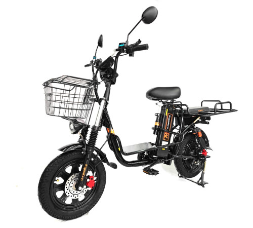 Функциональность: три режима езды (электро, ассистент, классический), возможность перевозки груза до 120 кг, встроенный амортизатор для комфортной езды по неровностям, USB-разъем для зарядки гаджетов, складные педали.